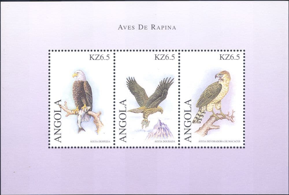 More InformationAngola 2000 Birds of Prey : Eagles 3 value miniature sheet featuring Bald Eagle, Tawny Eagle and Eagle - in superb u/m (mnh) condition - excellent country, birds, raptors, animals, nature, wildlife, conservation, environment thematics. If you cannot find the specific stamp set or thematic/topic you are looking for either here in my shop or at the brumstamp stamp shop on eBay http://stores.shop.ebay.co.uk/The-Brumstamp-Stamp-Shop please do not hesitate to contact me. Enjoy browsing and shopping. Andrea!