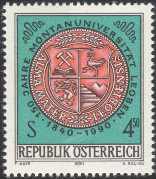 Austria 1990 Mining University/ Seal/ Coal/ Tools/ Lamp/ Minerals/ School 1v at1096a