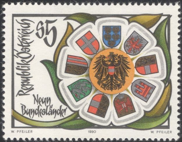 Austria 1990 State Coat-of-Arms/ Shields/ Heraldry/ Eagles/ Lions/ Birds 1v (at1093a)