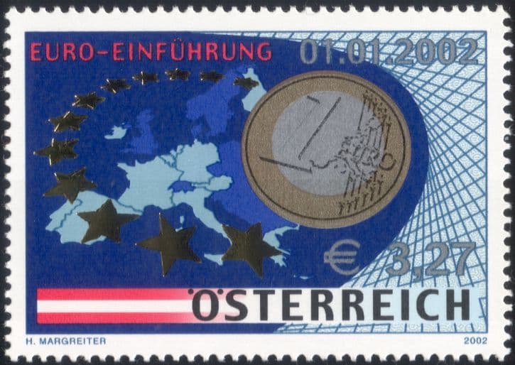 More InformationAustria 2002 Euro Currency Change 1 value depicting €1 Coin, Map of Europe and Gold foil embossed Stars, item is reverse printed, under the gum, with examples of Austrian Schilling Coins - in superb u/m (mnh) condition - excellent country, coins, money, commerce, currency, business, maps, politics, economy thematics. If you cannot find the specific stamp set or thematic/topic you are looking for either here in my shop or at the brumstamp stamp shop on eBay http://stores.shop.ebay.co.uk/The-Brumstamp-Stamp-Shop please do not hesitate to contact me. Enjoy browsing and shopping. Andrea!