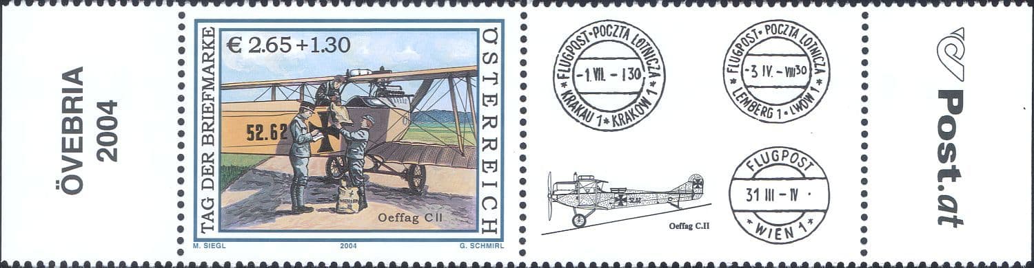 More InformationAustria 2004 Stamp Day 1 value + label featuring Oeffag C.11 Mail Plane - in superb u/m (mnh) condition - excellent country, planes, aircraft, aviation, flight, transport, postal history, post, mail, philately thematics. If you cannot find the specific stamp set or thematic/topic you are looking for either here in my shop or at the brumstamp stamp shop on eBay http://stores.shop.ebay.co.uk/The-Brumstamp-Stamp-Shop please do not hesitate to contact me. Enjoy browsing and shopping. Andrea!