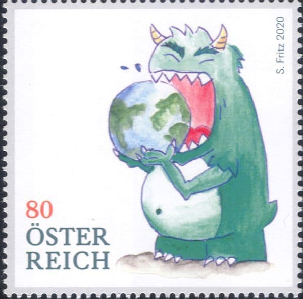 More InformationAustria 2020 "Buying the Future" : Sustainability, Ecology, Consumption Awareness Campaign 1 value depicting "Consumption Monster" Eating the World - in superb u/m (mnh) condition - excellent country, sustainability, scarce resources, rubbish, mass consumption, ecology, conservation, environment, animation thematics. If you cannot find the specific stamp set or thematic/topic you are looking for either here in my shop or at the brumstamp stamp shop on eBay http://stores.shop.ebay.co.uk/The-Brumstamp-Stamp-Shop please do not hesitate to contact me. Enjoy browsing and shopping. Andrea!