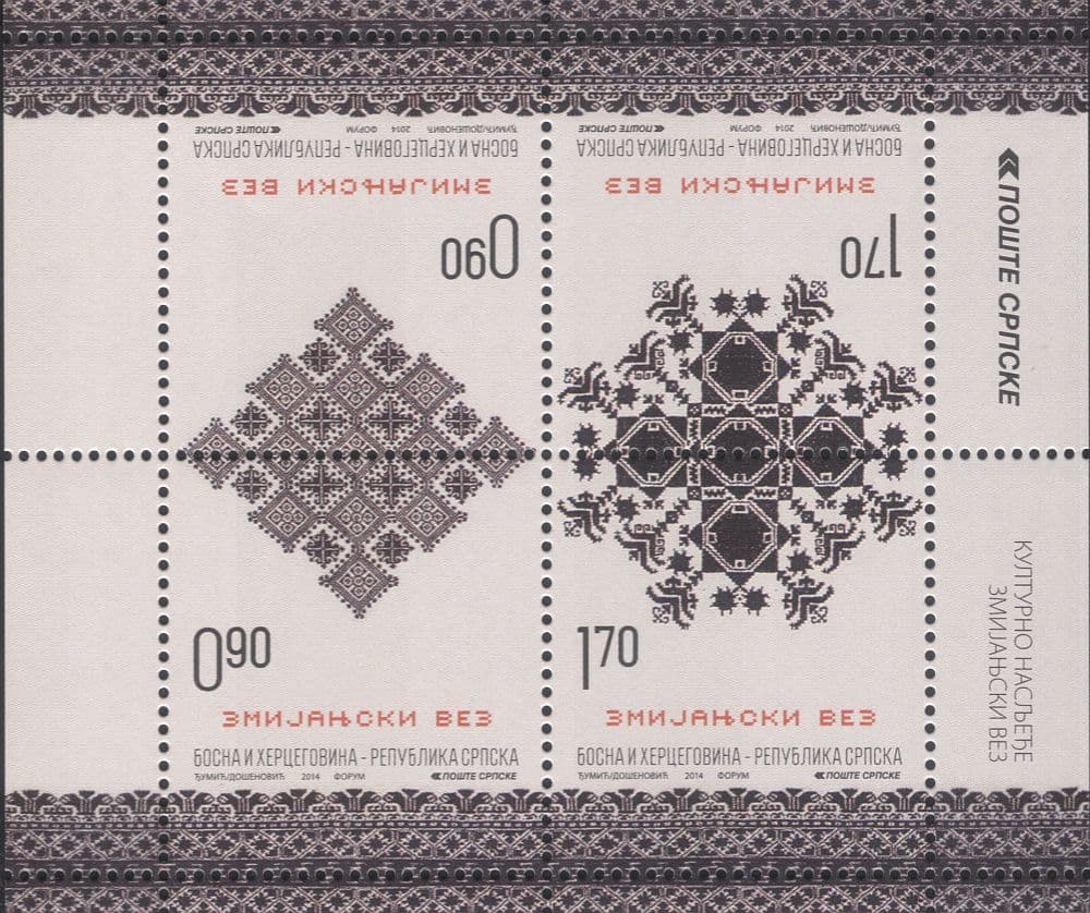 Bosnia Herzegovina 2014 Zmijanje Embroidery/ Sewing/ Craft/ Heritage 2 x 2v as block (bhs1033)