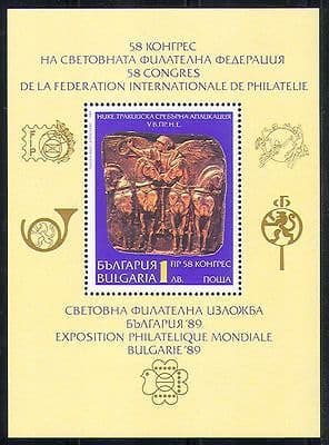 Bulgaria 1989 Horses / Art / Carving / Stampex / UPU m / s n29567