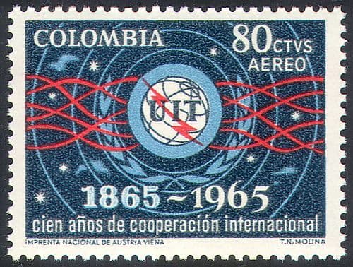 More InformationColombia 1965 International Telecommunications Union 100th Anniversary 1 value depicting Globe Emblem and Radio Waves - in superb u / m (mnh) condition - excellent country, radio, telecomms, communications, animation thematics . If you cannot find the specific stamp set or thematic/topic you are looking for either here in my shop or at the brumstamp stamp shop on eBay http://stores.shop.ebay.co.uk/The-Brumstamp-Stamp-Shop please do nothesitate to contact me. Enjoy browsing and shopping. Andrea!