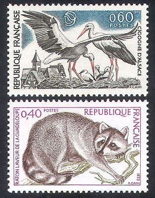 France 1973 Nature / Birds / Storks / Raccoon / Conservation / Animals 2v set (n23705)