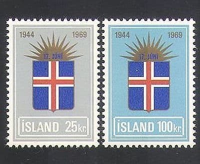 More InformationIceland 1969 Icelandic Republic 25th Anniversary 2 value set featuring Republican Emblem - in superb u / m (mnh) condition - excellent country, governance, politics, flags, shields, heraldry, design thematics . If you cannot find the specific stamp set or thematic/topic you are looking for either here in my shop or at the brumstamp stamp shop on eBay http://stores.shop.ebay.co.uk/The-Brumstamp-Stamp-Shop please do nothesitate to contact me. Enjoy browsing and shopping. Andrea!