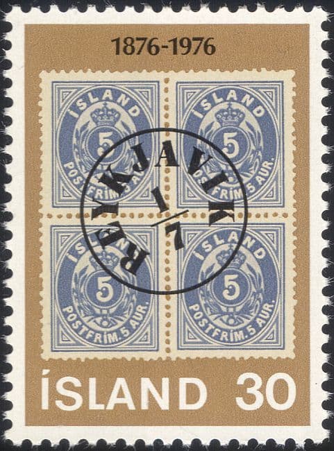 More InformationIceland 1976 Icelandic Aurar Currency Stamps 100th Anniversary 1 value featuring Block of 5a Stamps with Reykjavik Postmark - in superb u / m (mnh) condition - excellent country, postal history, s-on-s, stamp-on-stamp, animation thematics. If you cannot find the specific stamp set or thematic/topic you are looking for either here in my shop or at the brumstamp stamp shop on eBay http://stores.shop.ebay.co.uk/The-Brumstamp-Stamp-Shop please do not hesitate to contact me. Enjoy browsing and shopping. Andrea!