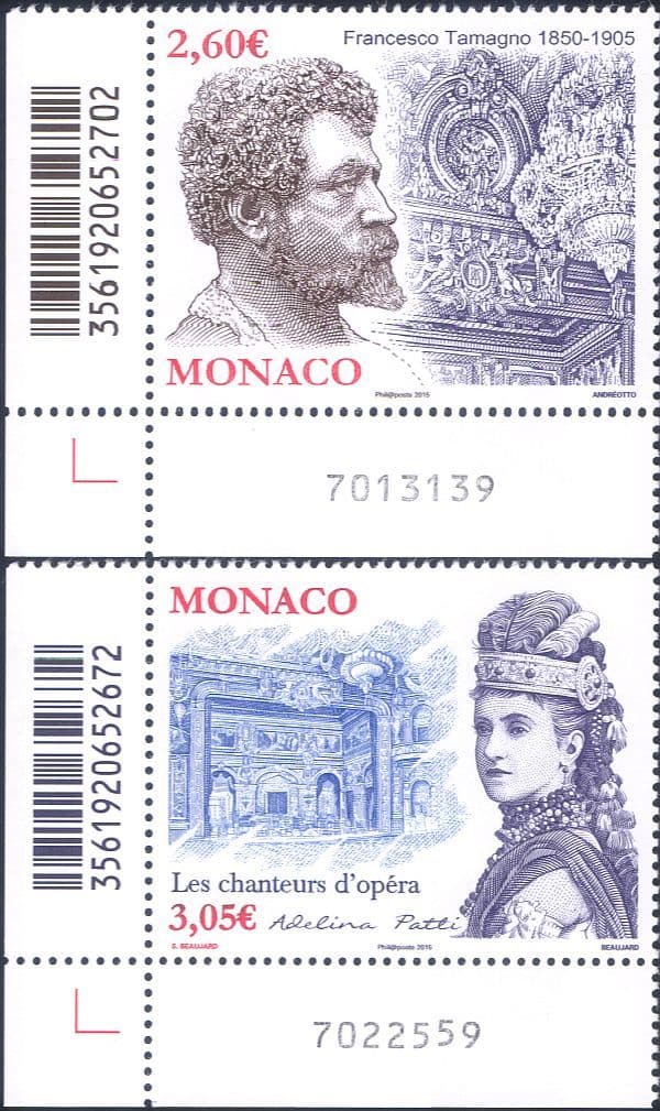 Monaco 2015 F. Tamagno/ A. Patti/ Music/ Opera Singers/ People 2v set (mc1357)