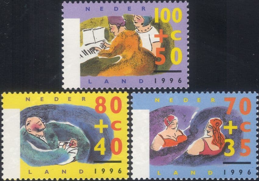 Netherlands 1996 Health & Welfare Fund/ Music/ Piano/ Swimming/ Elderly 3v set (n29826)