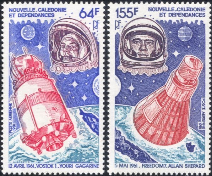 More InformationNew Caledonia 1981 Yuri Gagarin & Vostok 1 and Alan Shepard & Freedom 7 2 value set commemorating 20th Anniversary of Manned Space Flight - in superb u/m (mnh) condition - excellent country, space, transport, people, exploration, rocket, capsule, space craft thematics. If you cannot find the specific stamp set or thematic/topic you are looking for either here in my shop or at the brumstamp stamp shop on eBay http://stores.shop.ebay.co.uk/The-Brumstamp-Stamp-Shop please do not hesitate to contact me. Enjoy browsing and shopping. Andrea!
