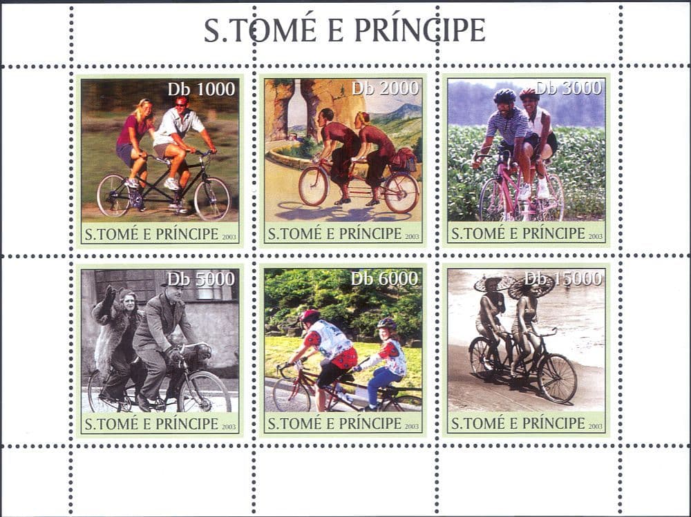 More InformationSao Tome 2003 Transport : Tandems 6 value miniature sheet featuring Tandems and Cyclists - in superb u/m (mnh) condition - excellent country, sports, bikes, transport, bicycles, cycling thematics. If you cannot find the specific stamp set or thematic/topic you are looking for either here in my shop or at the brumstamp stamp shop on eBay http://stores.shop.ebay.co.uk/The-Brumstamp-Stamp-Shop please do not hesitate to contact me. Enjoy browsing and shopping. Andrea!