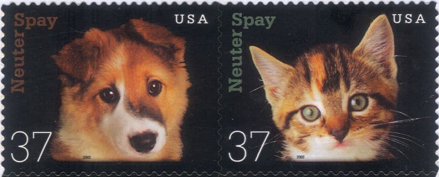 More InformationUnited States of America 2002 Animal Population Control Campaign 2 value self adhesive set as pair featuring Kitten and Puppy - in superb u/m (mnh) condition - excellent country, animals, feline, cat, dogs, pets thematics. If you cannot find the specific stamp set or thematic/topic you are looking for either here in my shop or at the brumstamp stamp shop on eBay http://stores.shop.ebay.co.uk/The-Brumstamp-Stamp-Shop please do not hesitate to contact me. Enjoy browsing and shopping. Andrea!
